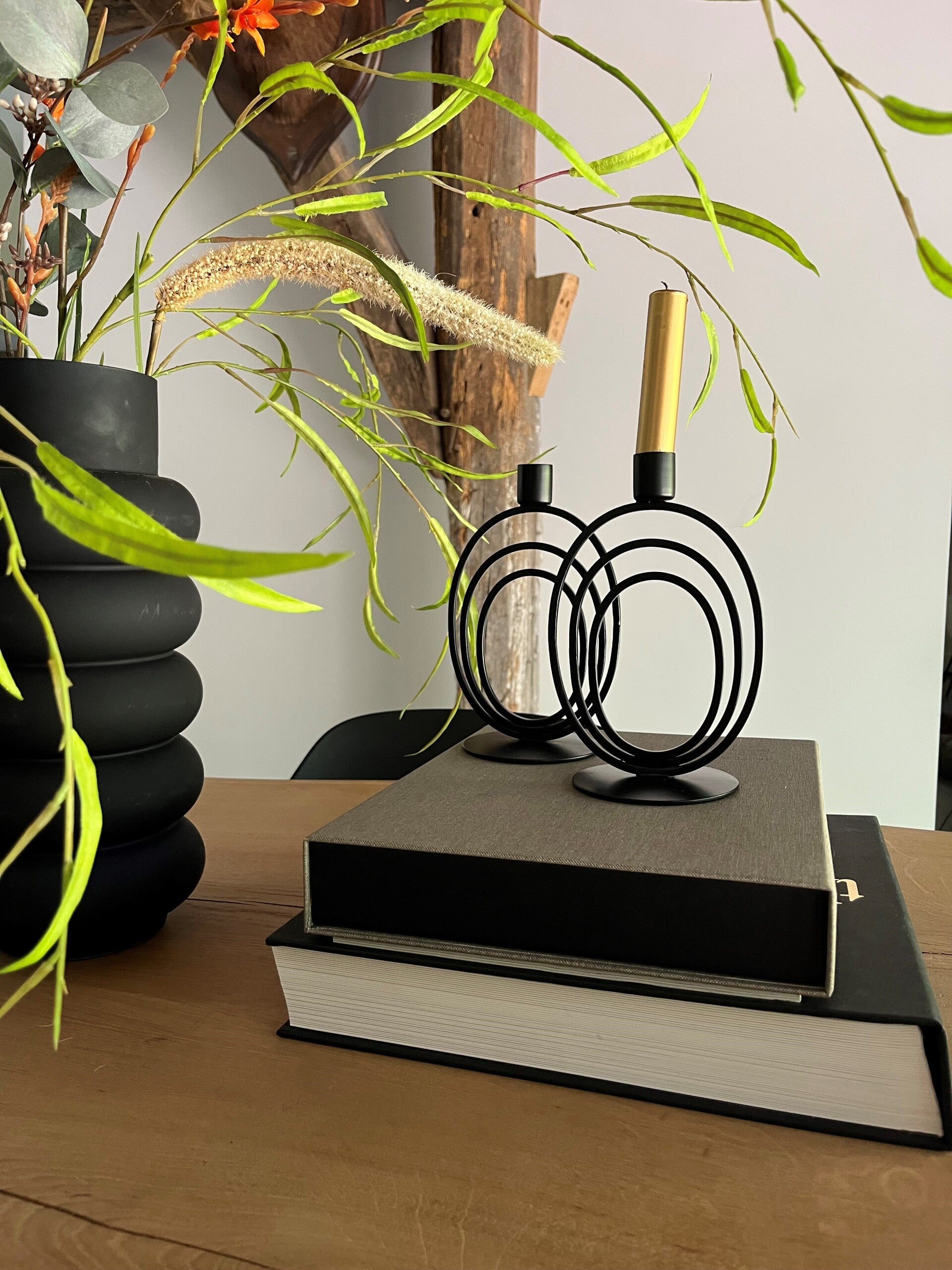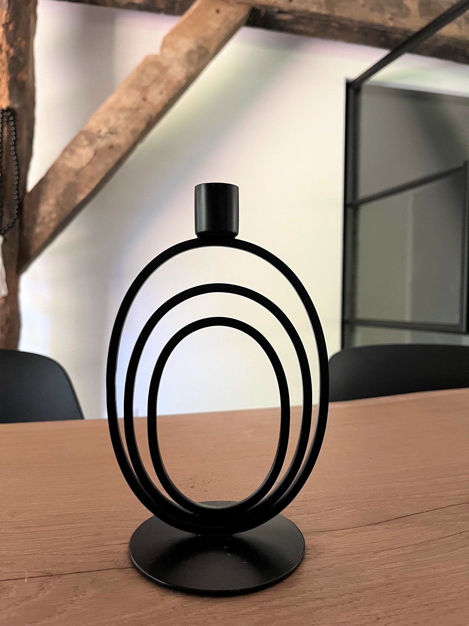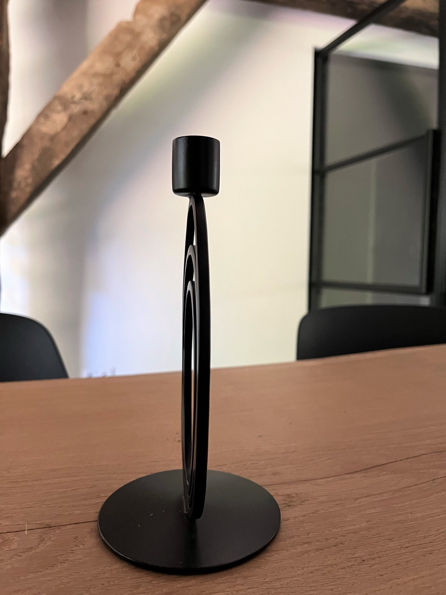 Het is een stevige stalen zwarte kandelaar met met een solide voet, echt een stukje kwaliteit.